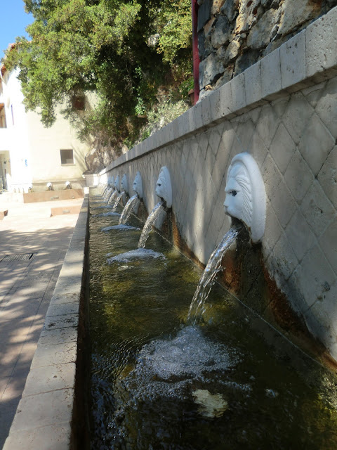 Kristallklart hälsobringande vatten i byn Spili på Kreta.